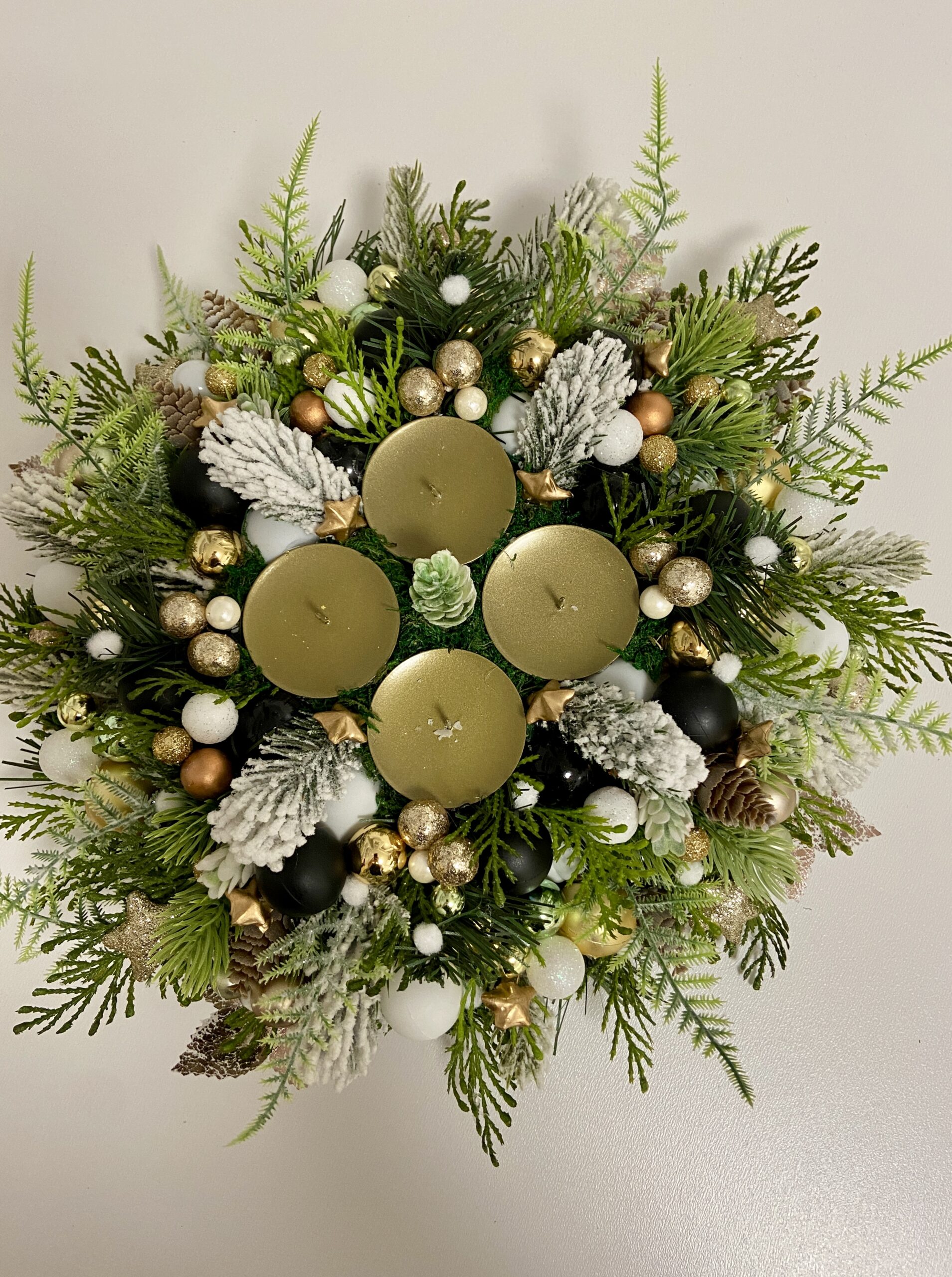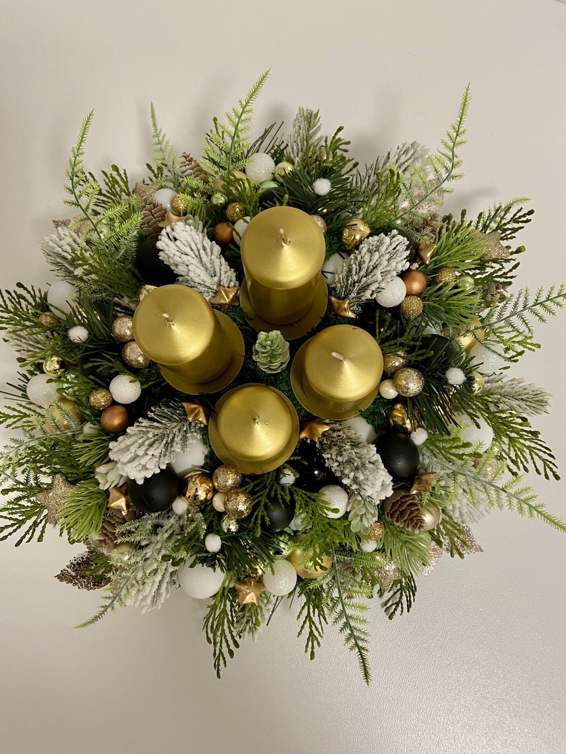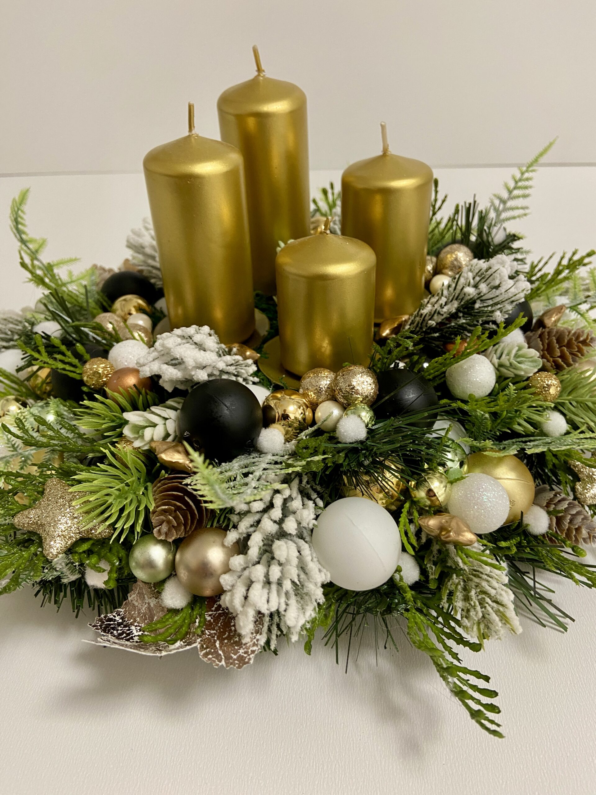 Adventný svietnik v luxusnej kombinácii zlatej, čiernej a bielej ✨